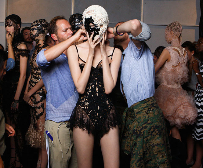 Backstage at Alexander McQueen Spring/Summer 2012 show, by Jason Lloyd Evans
